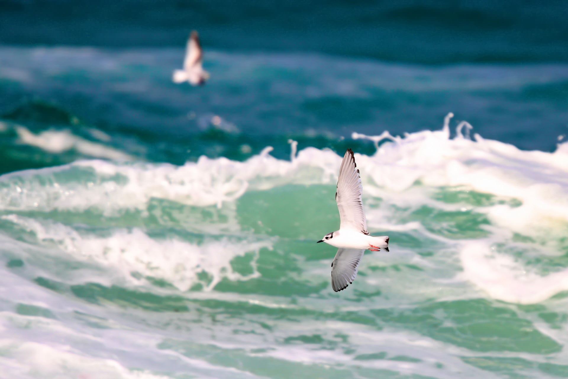 Karadeniz'in kabaran soğuk dalgaları arasında yiyecek arayan küçük martılar...